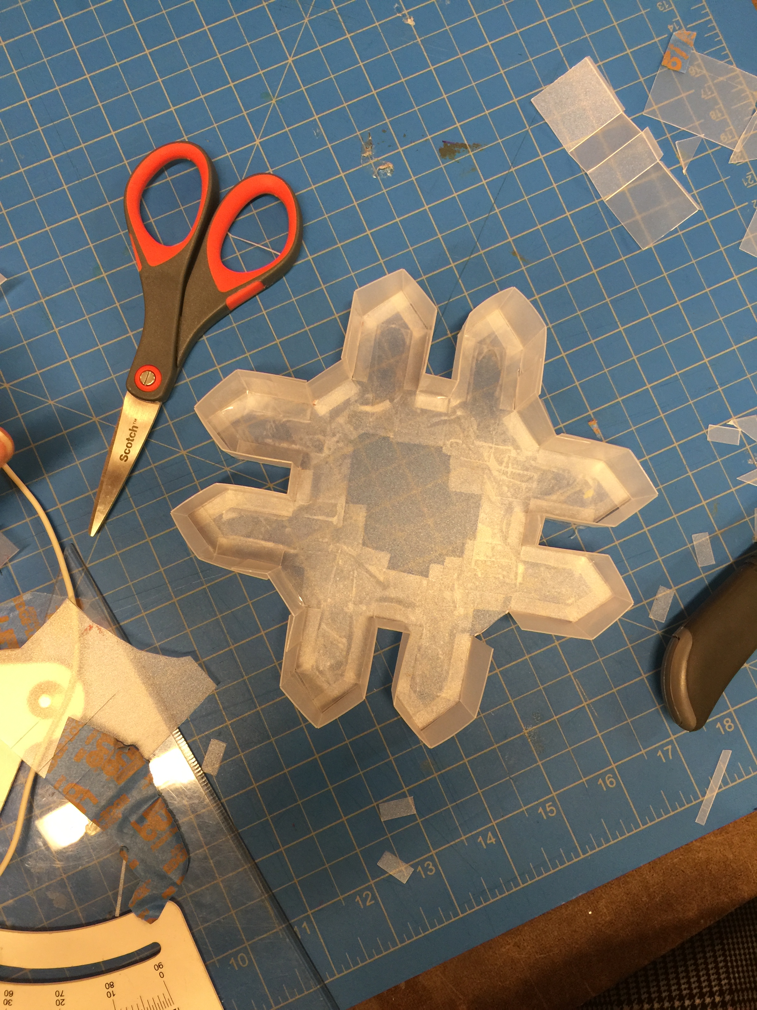 I learned that working with silicone is a lot more challenging that I expected. The images I had in my head really translated differently in practice. I’m not sure how to make the stencil method work well. The silicone seems to have flooded some limbs of the creature.