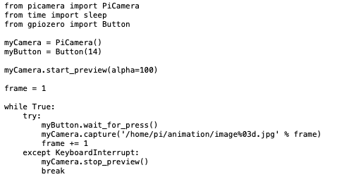 Then we discovered a tutorial on the Raspberry Pi website that tells you how to take the photos and generate the gif. We decided to begin by following this tutorial with the intension to add onto the project to differ it from the instructions.